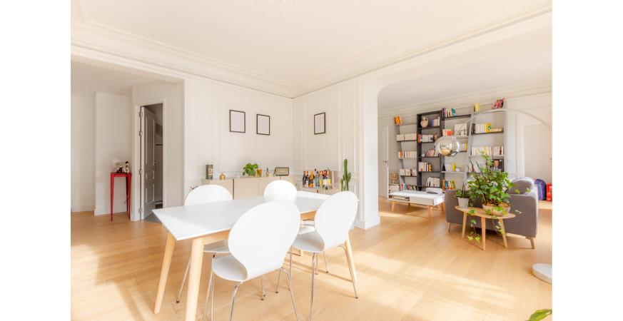 Magnifique appartement de 83m2, refait à neuf par un architecte, situé au 5 étage d’un immeuble typique haussmannien. Il est composé d’une entrée, d’un séjour, d’une salle à manger donnant sur une cuisine semi-ouverte équipée, de 2 chambres, d’un dressing et beaucoup de rangements, 2 salles de douche et 2 WC. Toutes les pièces de l’appartement donnent sur un balcon filant offrant une vue panoramique sur l’Ecole Militaire et la Tour Eiffel. Exposition Sud-Ouest, ensoleillement exceptionnel. Prestations haut de gamme.