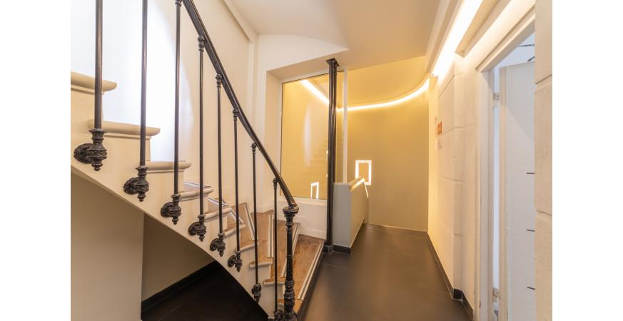 En face des Galeries Lafayette au pied de métro un parfait pied à terre de 78m2 situé au 5ème étage (avec ascenceur) dans un immeuble haussmannien sécurisé. Il offre une vaste entrée, un double séjour avec une cuisine américaine équipée tout donnant sur une grande terrasse ensoleillée, une chambre avec beaucoup de placards et une salle de douche avec un WC. Une buanderie.