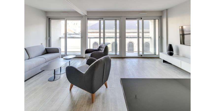 GROS CAILLOU / LOCATION MEUBLE Dans une co-propriété de haut standing securisée au 3me étage avec une jolie vue sur l'Eglise St-Pierre du Gros Caillou un appartement de 57m2 refait entièrement à neuf et meublé. Un grand double salon avec une cuisine ouverte équipée donnant sur un balcon de 8m2. Une chambre avec sa salle de bain et beaucoup de rangement. Donnant également sur le 2me balcon. Le salon possède un paravent modulable et peut etre transformé en salon et une 2me chambre. Possibilité de louer un parking dans l'immeuble.