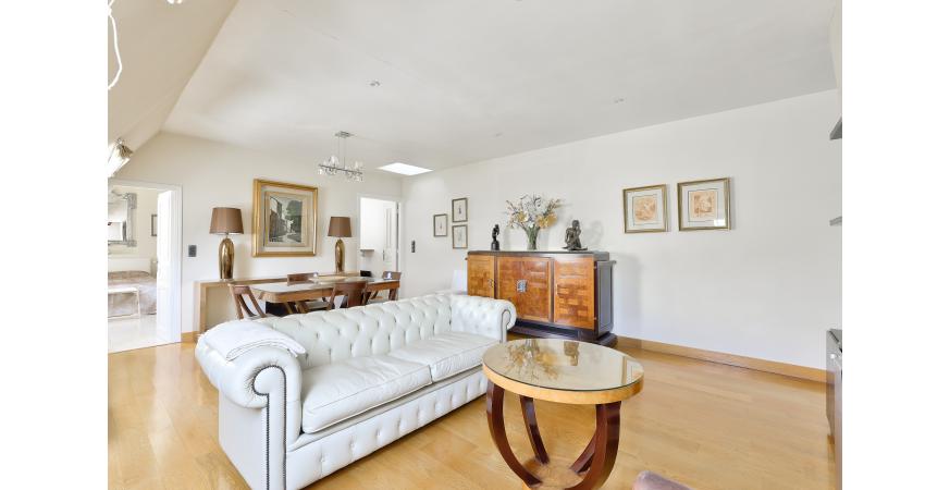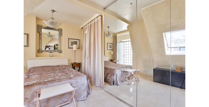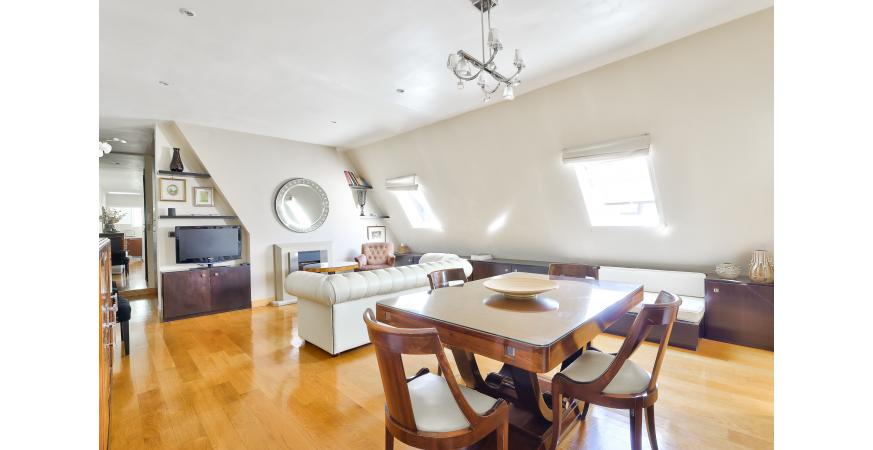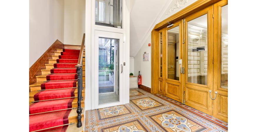 TRIANGLE D’OR – Idéalement situé rue du Boccador, à deux pas de l’avenue Montaigne et de l’hôtel Plaza Athénée, ce charmant pied-à-terre de 60 m² se trouve au 6ᵉ étage d’un superbe immeuble datant de 1880 (ascenseur principal jusqu’au 6ᵉ étage).