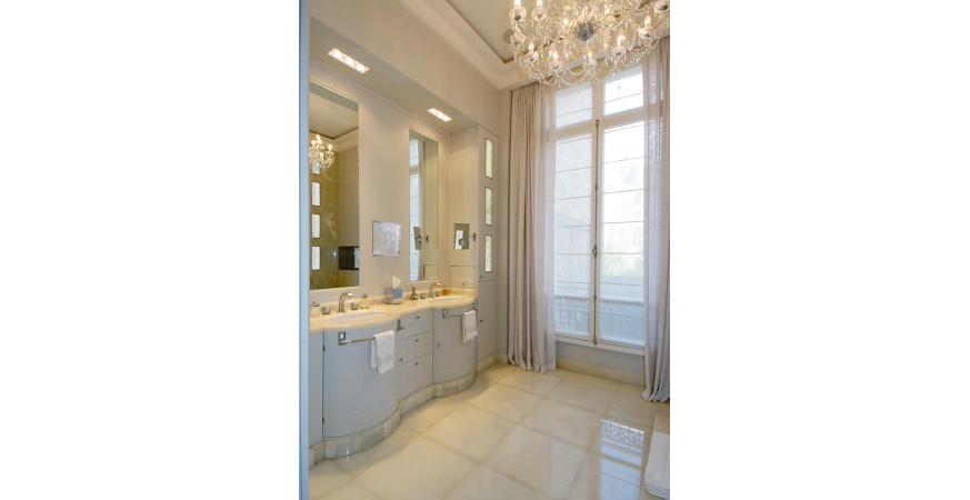 Cet appartement de luxe est l'œuvre d'un célèbre architecte français. Il est situé au 1er étage d'une somptieux immeuble haussmanien d'une surface totale de 400 m2. Il est composé d'une hall d'entrée spaciuex en marbre, de 2 salons avec cheminées, d'une grande cuisine dinatoire. 2 chambres, 2 salles de bain en onyx, un bureau, dressings pour Monsieur et Madame, une salle de fitness. Renovation exceptionnelle.