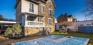 Le jardin exposé sud est agrémenté d’une jolie piscine qui est un vrai plus de cette belle propriété. Ses volumes généreux, son charme et son jardin avec piscine à 15 minutes de Paris en font un lieu unique.