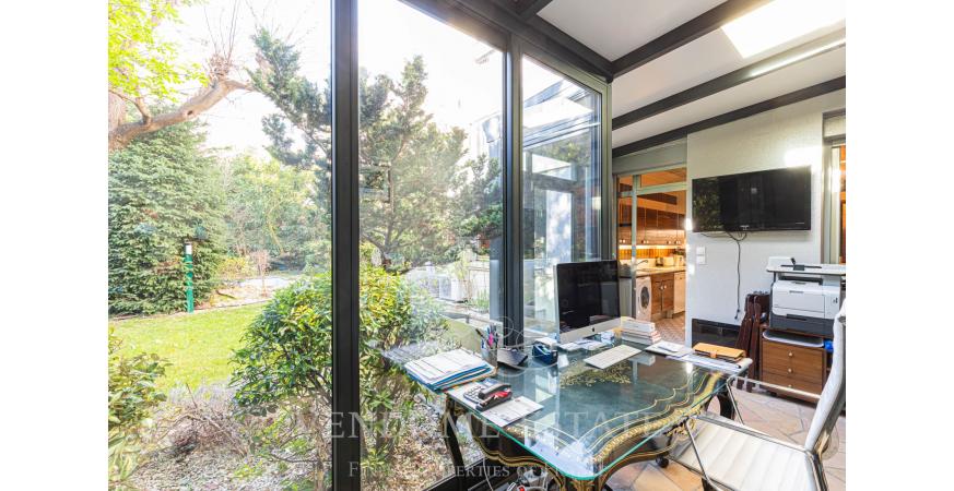 Dans un passage privé et sécurisé, dans un immeuble récent, un appartement en rez-de-jardin sur deux niveaux situé dans le quartier Bagatelle à proximité du bois de Boulogne, des commerces et du métro.