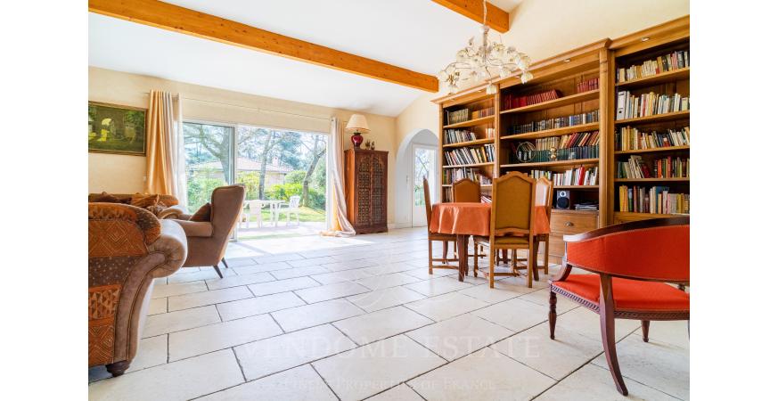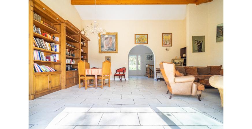 - Un spacieux séjour (environ 50m2) avec plafond en cathédrale, baignée du soleil exposé Sud-Est avec sa cuisine dinatoire équipée dinatoire