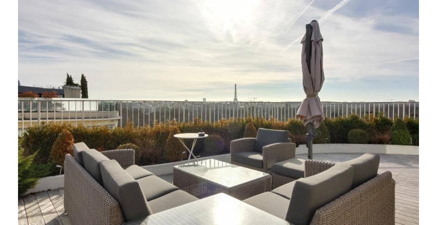 Magnifique penthouse de 283 m2 avec toit terrasse 158m2 donnant sur Bois de Boulogne et offrant une vue sur la Tour Eiffel