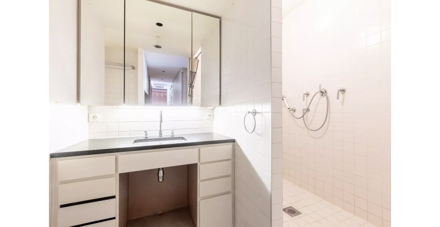 Beaucoup de rangements. Calme, donnant sur un jardin fleuri.