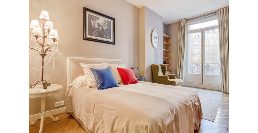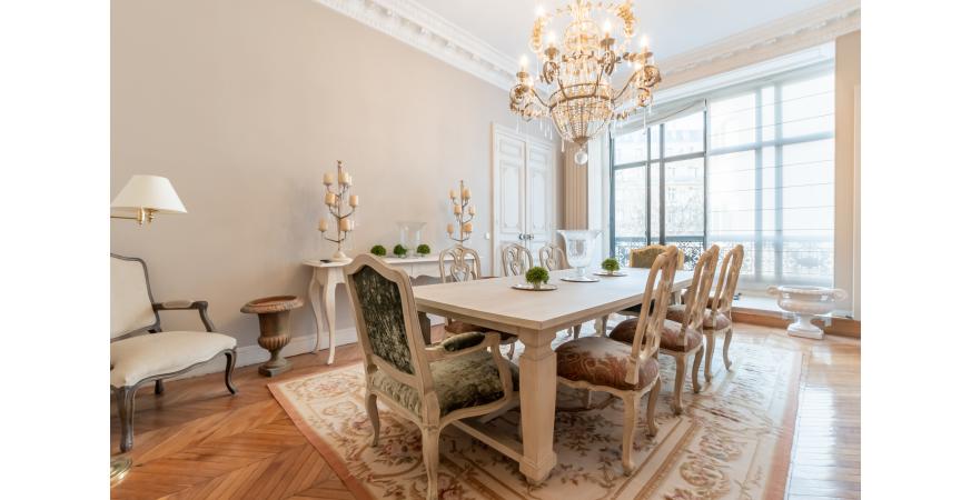 VENDU Somptueux appartement refait à neuf situé au 2e étage dans un très bel immeuble haussmannien au cœur du Triangle d’or. Il offre une vaste entrée, un salon, une salle à manger, une cuisine dînatoire équipée, 3 chambres dont une Master Suite avec un grand dressing et une belle salle de bain. La totalité de l’appartement donne sur un balcon filant. Très clair, exposition Ouest. Charme de l’ancien : parquet, moulure, cheminée, bow-window, hauteur sous plafond 3m40. Prestations haut de gamme. Vendu meublé.