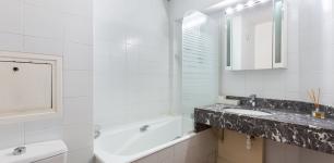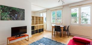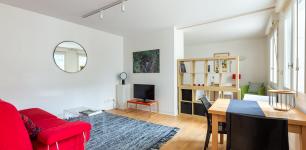 The apartment is refurbished. It offers a living room with a sofa bed, an open fitted kitchen (washing machine/dryer, dishwasher), a bedroom (semi-separate) with wardrobe and a bathroom with toilet.