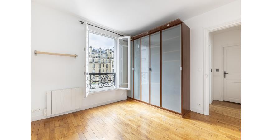 Located in a secure gated street on the 4th floor (by staircase) of a parisian stone building.