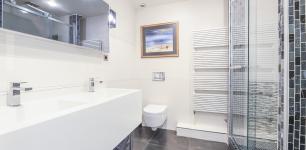 La salle de douche moderne est accompagnée de WC intégrés et un WC séparé est également disponible pour les invités. En parfait état, cet appartement bénéficie d’une exposition plein sud, assurant une belle luminosité tout au long de la journée, et de fenêtres à double vitrage garantissant calme et confort. Une cave complète ce bien.