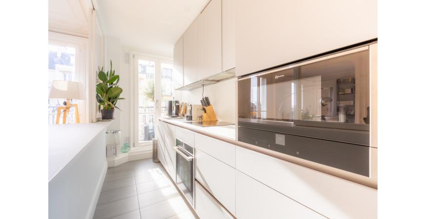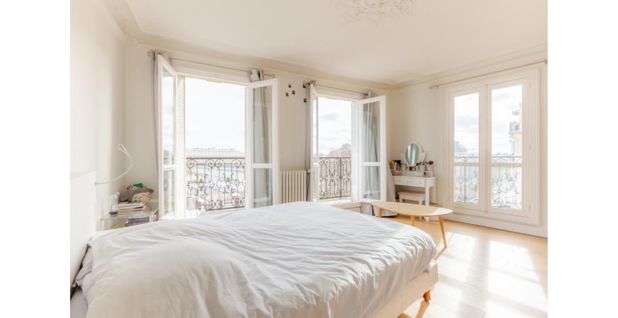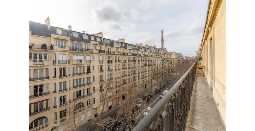 Magnifique appartement de 83m2, refait à neuf par un architecte, situé au 5 étage d’un immeuble typique haussmannien. Il est composé d’une entrée, d’un séjour, d’une salle à manger donnant sur une cuisine semi-ouverte équipée, de 2 chambres, d’un dressing et beaucoup de rangements, 2 salles de douche et 2 WC. Toutes les pièces de l’appartement donnent sur un balcon filant offrant une vue panoramique sur l’Ecole Militaire et la Tour Eiffel. Exposition Sud-Ouest, ensoleillement exceptionnel. Prestations haut de gamme.