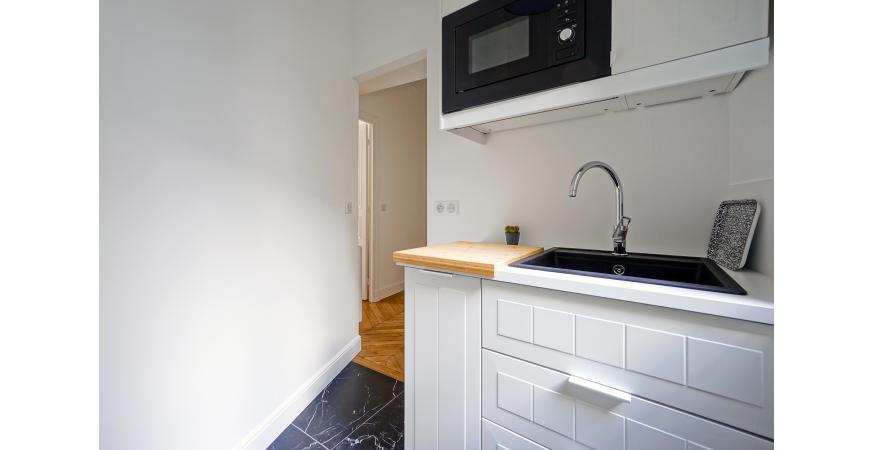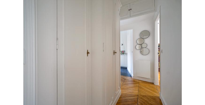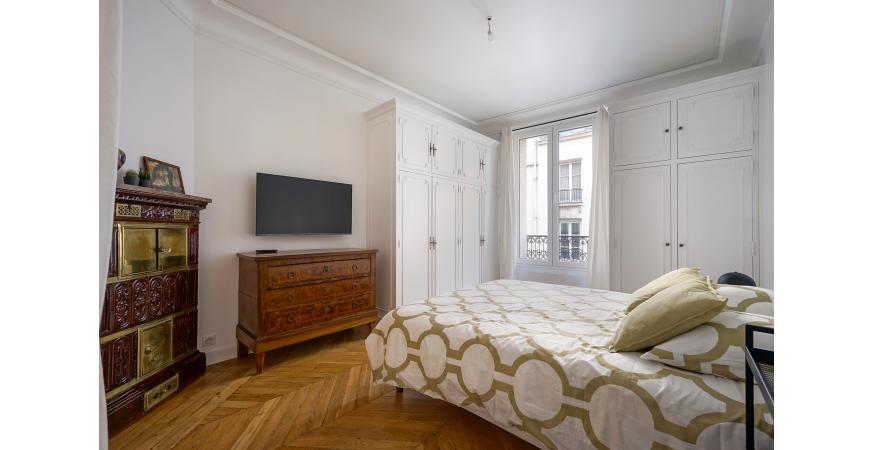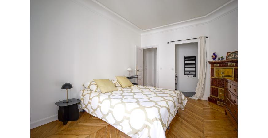 L'appartement est refait à neuf par un architecte. Il offre un salon, une cuisine équipée, une chambre et une salle d’eau avec toilette séparé. Charme de l'ancien : parquet, moulures, cheminée.