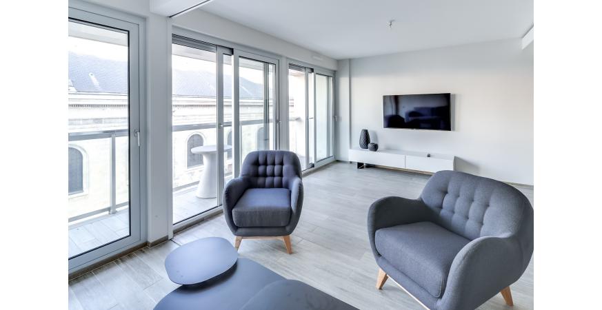 GROS CAILLOU / LOCATION MEUBLE Dans une co-propriété de haut standing securisée au 3me étage avec une jolie vue sur l'Eglise St-Pierre du Gros Caillou un appartement de 57m2 refait entièrement à neuf et meublé. Un grand double salon avec une cuisine ouverte équipée donnant sur un balcon de 8m2. Une chambre avec sa salle de bain et beaucoup de rangement. Donnant également sur le 2me balcon. Le salon possède un paravent modulable et peut etre transformé en salon et une 2me chambre. Possibilité de louer un parking dans l'immeuble.