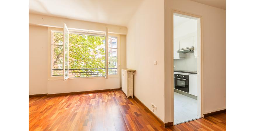 Au pied du métro Michel-Ange - Molitor dans le 16ème arrondissement, au sein d'un magnifique immeuble des années 30 parfaitement entretenu, avec gardien et ascenseur, une grande pièce à vivre avec un espace nuit, cuisine aménagée et équipée séparée, salle de bains avec toilette, tout s'ouvrant sur jardin plein Ouest.