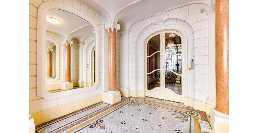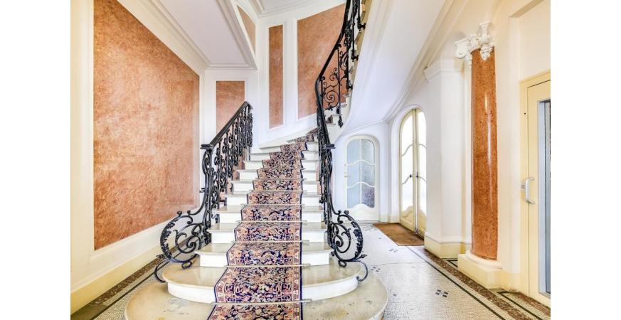 Bel appartement de 5 pièces (122 m²) est situé au 5eme étage avec ascenseur d’un magnifique immeuble haussmannien. Avec plus de 3 mètres de hauteur sous plafond, des moulures et des cheminées il a gardé tout le charme de l’époque. Entrée, très bel salon et salle à manger, 3 chambres, 2 salles de douches, 1 WC, cuisine séparée. Un balcon filant. Deux caves et 2 chambres de service complètent ce bien.