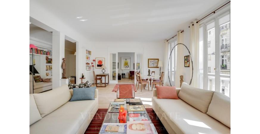 A quelques pas du pont de l’Alma, vous apprécierez cet élégant appartement de 193 m² refait à neuf avec du goût et du raffinement.