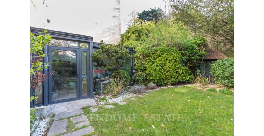 Dans un passage privé et sécurisé, dans un immeuble récent, un appartement en rez-de-jardin sur deux niveaux situé dans le quartier Bagatelle à proximité du bois de Boulogne, des commerces et du métro.