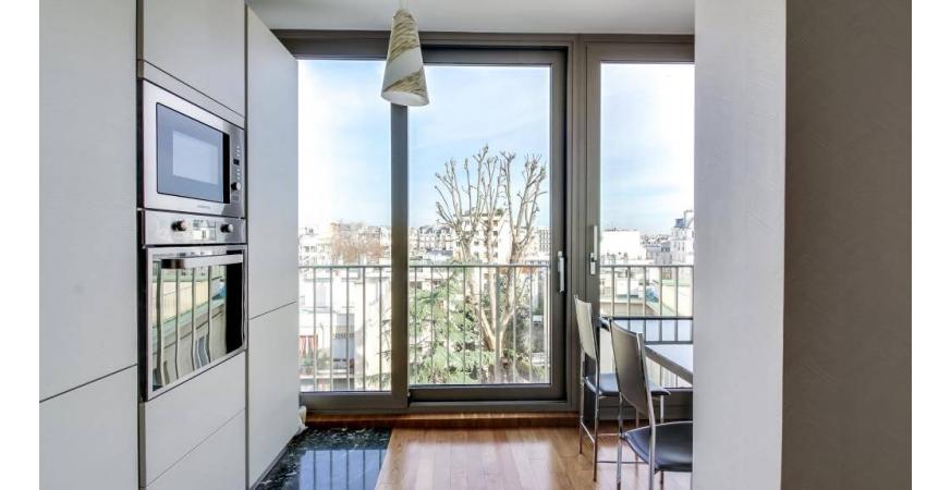 Au 6me étage : grand salon avec la vue sur le Bois et la Tour Eiffel, une salle à manger, un petit salon, 3 chambres, 3 salles de bain, grande cuisine dinatoire. Entouré d’un large balcon filant de 21m2.