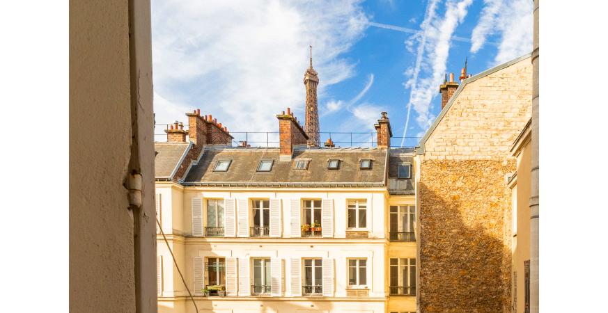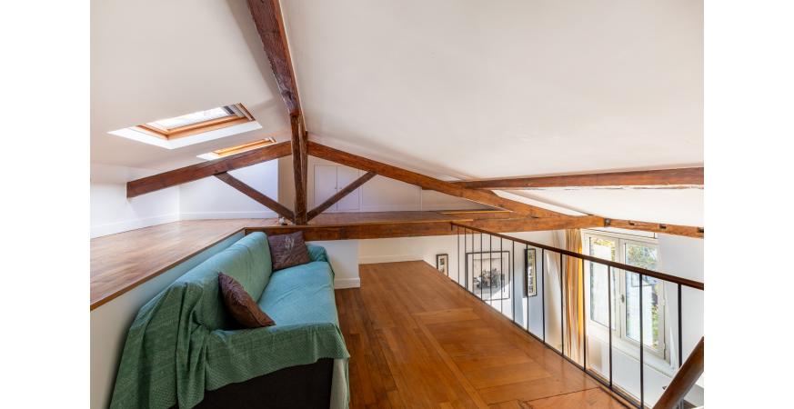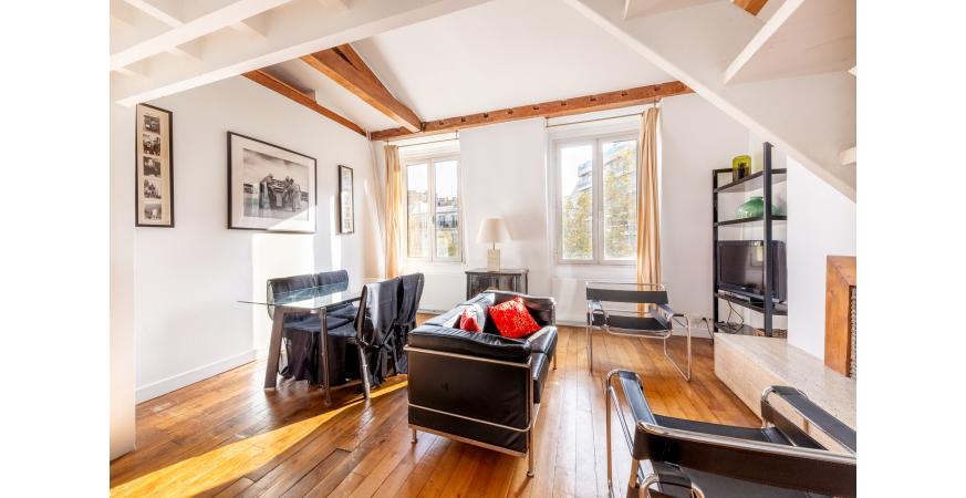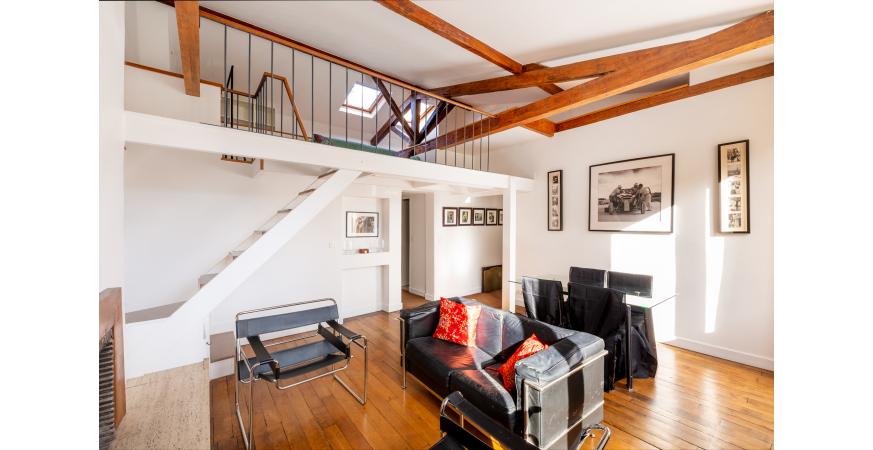 EXCLUSIVITE Situé sur une très belle avenue du 7ème arrondissement au 4ème étage (avec un ascenseur) d’un joli immeuble ancien. Un charmant appartement de 49,15m2 (Loi Carrez) et 65,55m2 au sol composé d’un grand salon donnant sur l'avenue, d’une chambre avec une vue sur les toits de Paris et la Tour Eiffel, d’une salle de douche avec un WC et d’une cuisine, d'un mezzanine pouvant servir d'une 2ème chambre ou d'un bureau. Charme de l'ancien, parquet, cheminée, poutres apparentes, grande hauteur sous le plafond.