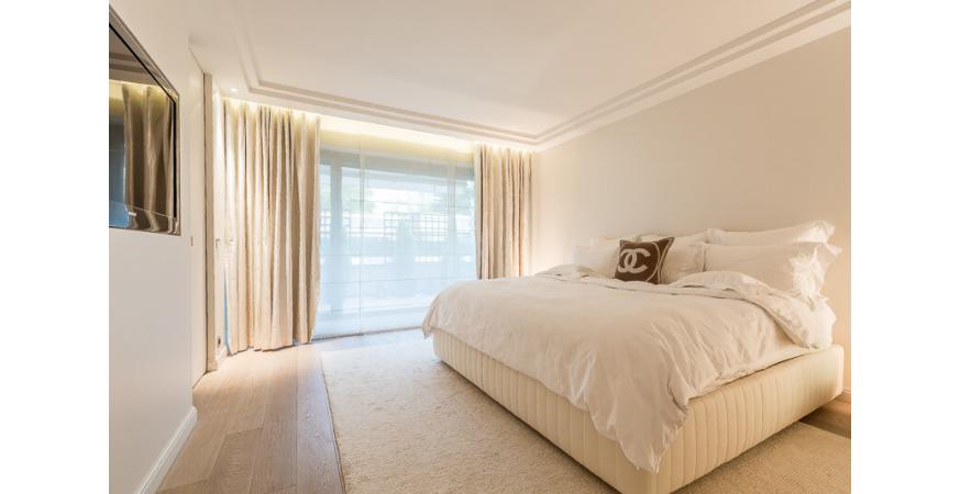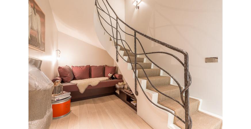 Au 2me étage: chambre principale avec une terrasse privée donnant sur le jardin intérieur de l’immeuble, salle de bains avec WC, deux autres chambres, salle de douche et toilettes, dressing.