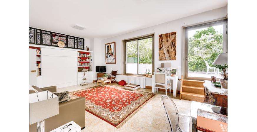 Situé au rez-de-jardin d’une résidence sécurisée de standing un grand studio de 45m2 (loi Carrez), donnant sur une large terrasse de plain-pied de 33m2 en jouissance privative et exclusive. Il est composé d’une entrée avec des placards, d’une large pièce à vivre, d’une cuisine séparée, d’une salle de bain avec un WC. Une cave complète ce bien rare.